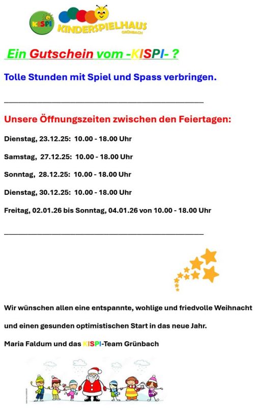 Das "Kinderspielvogtland" im Gemeindezentrum Grünbach ist seit März 2004 ein weithin wirkender Kinderspielort. Dabei kann das Pilotprojekt auf die Unterstüzung von Politik und Wirtschaft zählen.